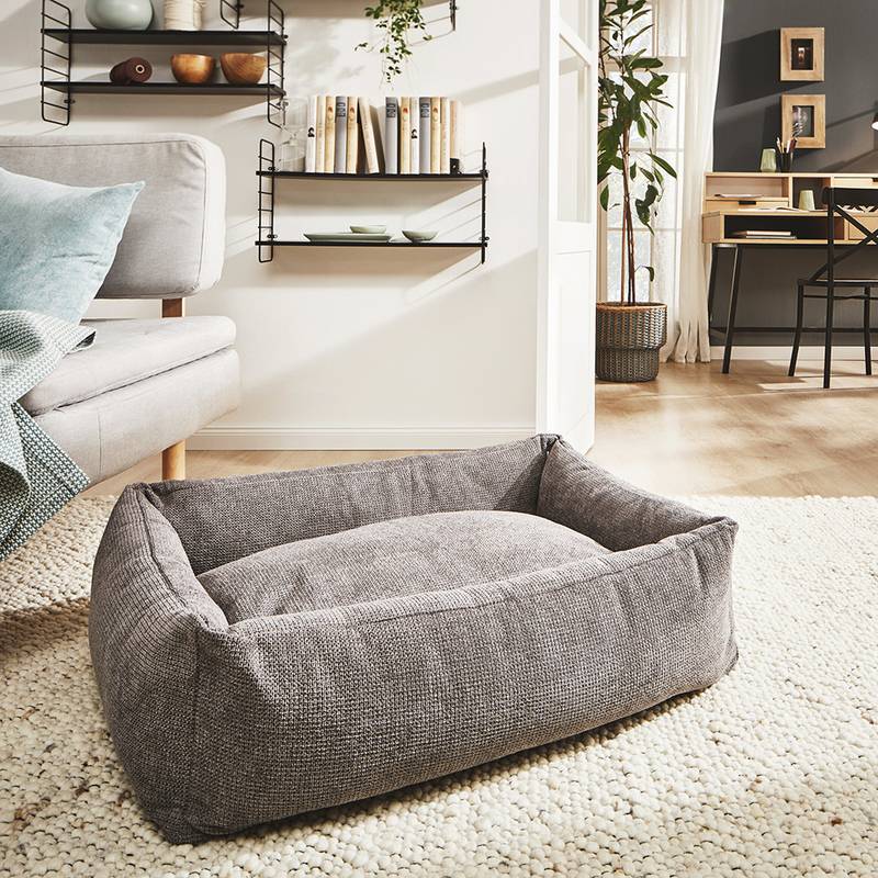 Das komfortable Hundebett mit umlaufendem Rand TUDOR in klassisch elegantem Anthrazit von Laboni.