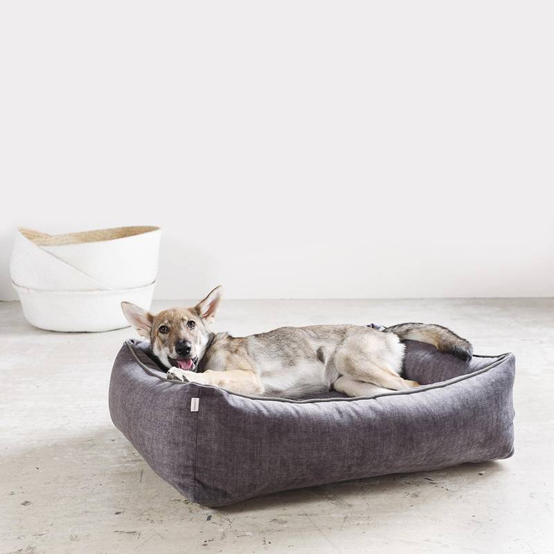 Ein Hundebett der Luxusklasse: GLAM von Laboni. Mit Samtbezug in elegantem GRAPHIT.