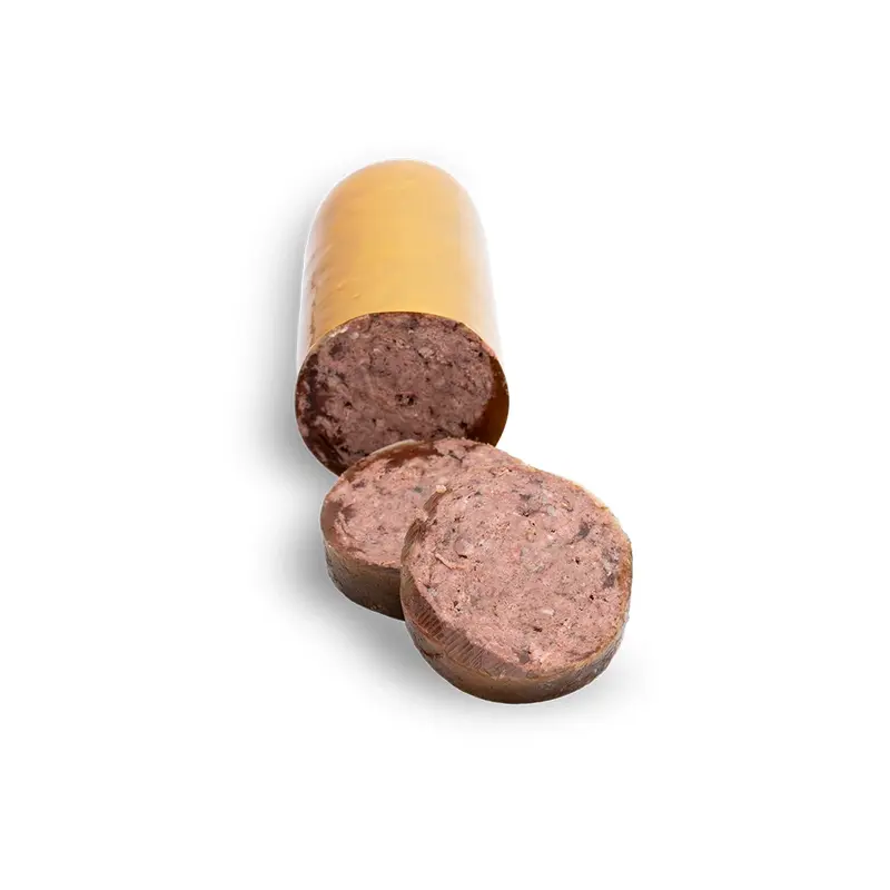 Hundefutter-Wurst • Reh pur • schnittfest dampfgegart im Kunstdarm