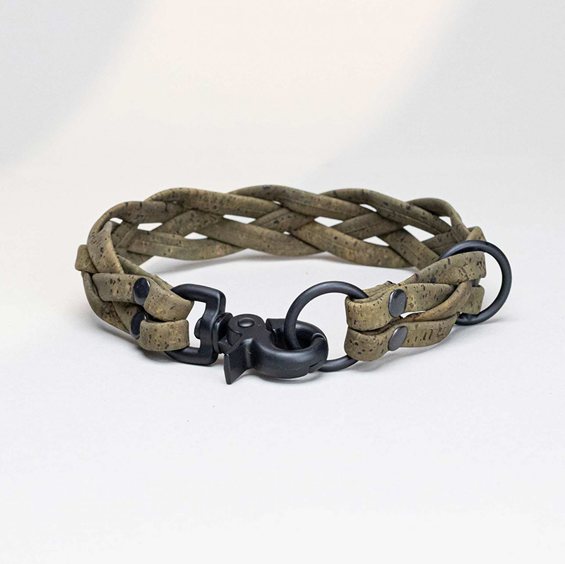 Ein Hundehalsband, aus Korkleder geflochten – auf Maß.