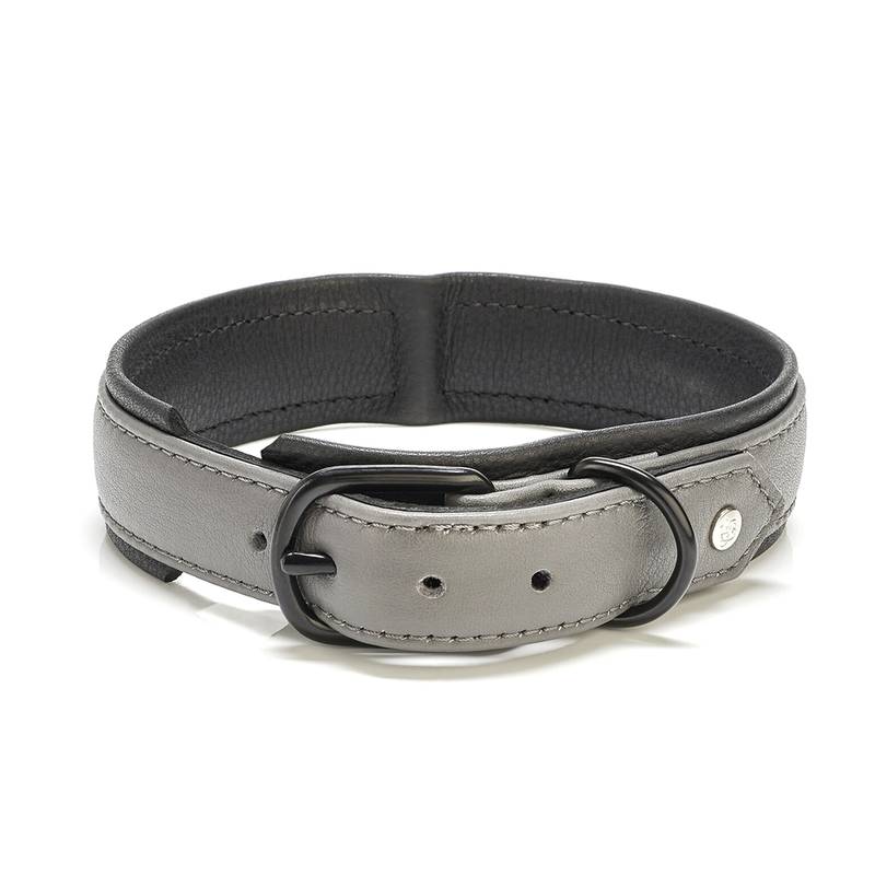 Hundehalsband aus Leder AMICI Anthrazit • gepolstert