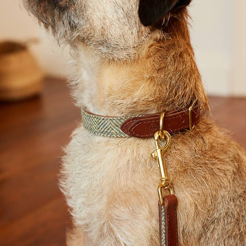 Das Tweed-Halsband mit Messing-Schnalle ist in verschiedenen Größen erhältlich und jeweils vierfach verstellbar, um sicherzustellen, dass es Deinem Hund auch wirklich passt.