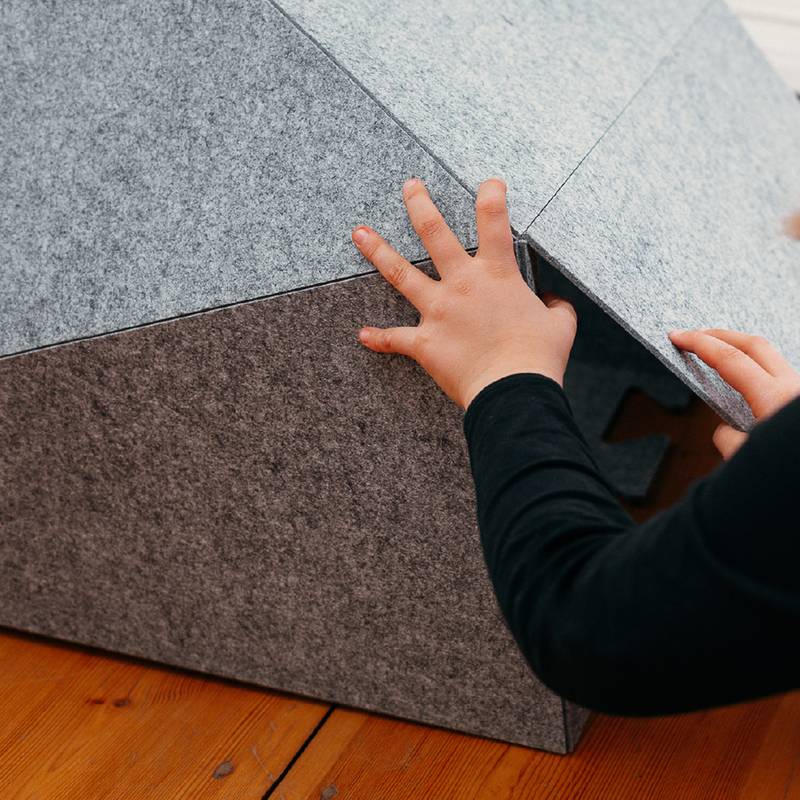 Die große Öffnung erlaubt es Deinem Hund, selbständig seinen Rückzugsort aufzusuchen, wenn er seine Ruhe braucht. In der Höhle findet er einen weichen Schlafplatz auf dem Soft-Kissen mit besonders anschmiegsamer Oberfläche. Der Filz ist formstabil und schallisolierend – so schirmt die Hütte deinen Hund vor akustischen Reizen ab und hilft ihm, Ruhe zu finden.
