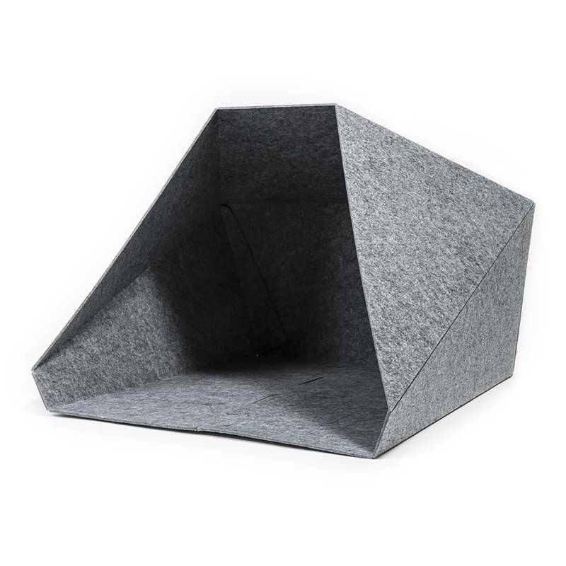 Die große Öffnung erlaubt es Deinem Hund, selbständig seinen Rückzugsort aufzusuchen, wenn er seine Ruhe braucht. In der Höhle findet er einen weichen Schlafplatz auf dem Soft-Kissen mit besonders anschmiegsamer Oberfläche. Der Filz ist formstabil und schallisolierend – so schirmt die Hütte deinen Hund vor akustischen Reizen ab und hilft ihm, Ruhe zu finden.