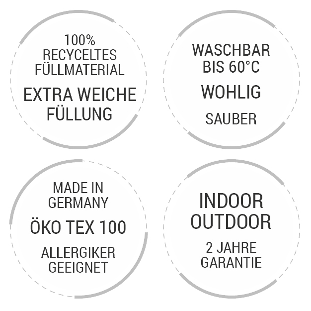 Die Füllung besteht zu 100% aus Recycling-Material, ist atmungsaktiv und isolierend und verspricht einen bauschig-weichen Liegekomfort mit Nest-Effekt wie auf Wolke 7. Die Back-to-Shape-Funktion sorgt dafür, dass das auch so bleibt (gelegentliches Aufschütteln ist trotzdem nötig).