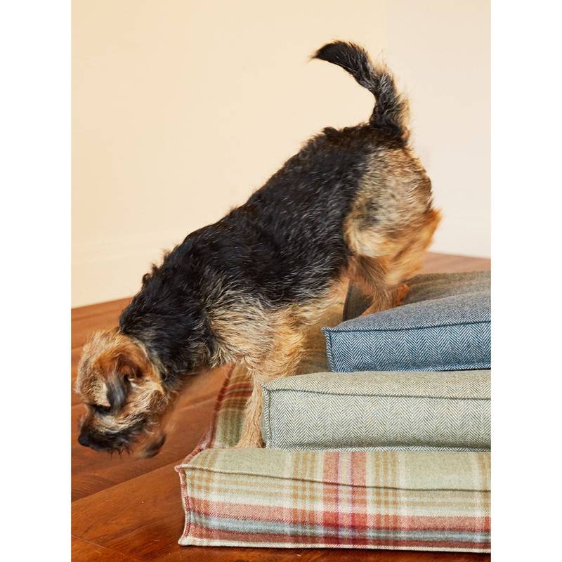 Das Tweed Hundebett ist 10 cm hoch und erhältlich in drei Größen: