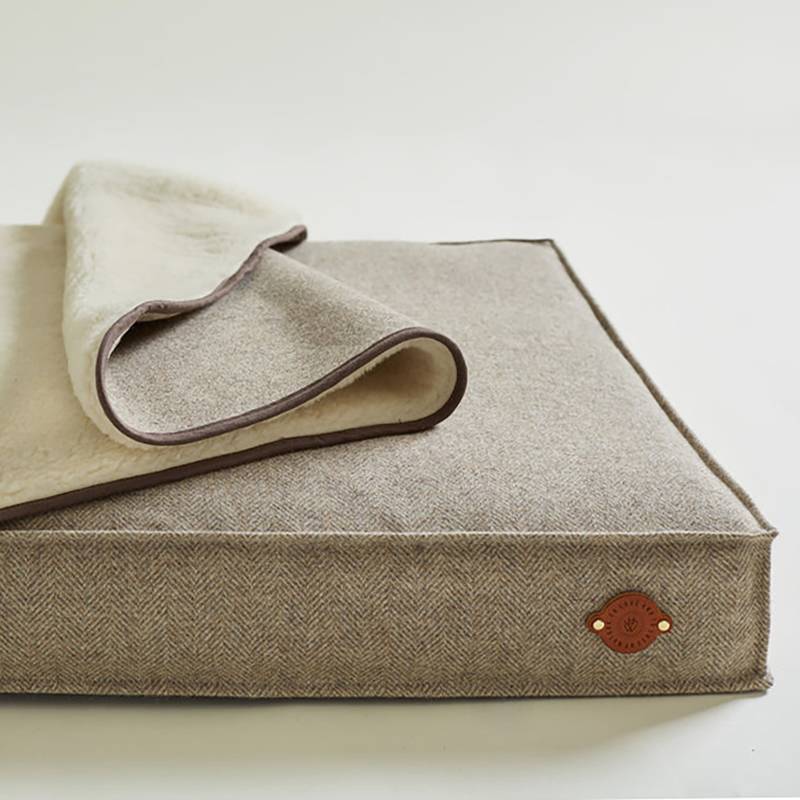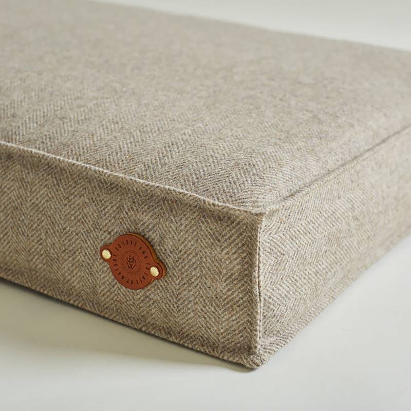 Das Tweed Hundebett ist 10 cm hoch und erhältlich in drei Größen: