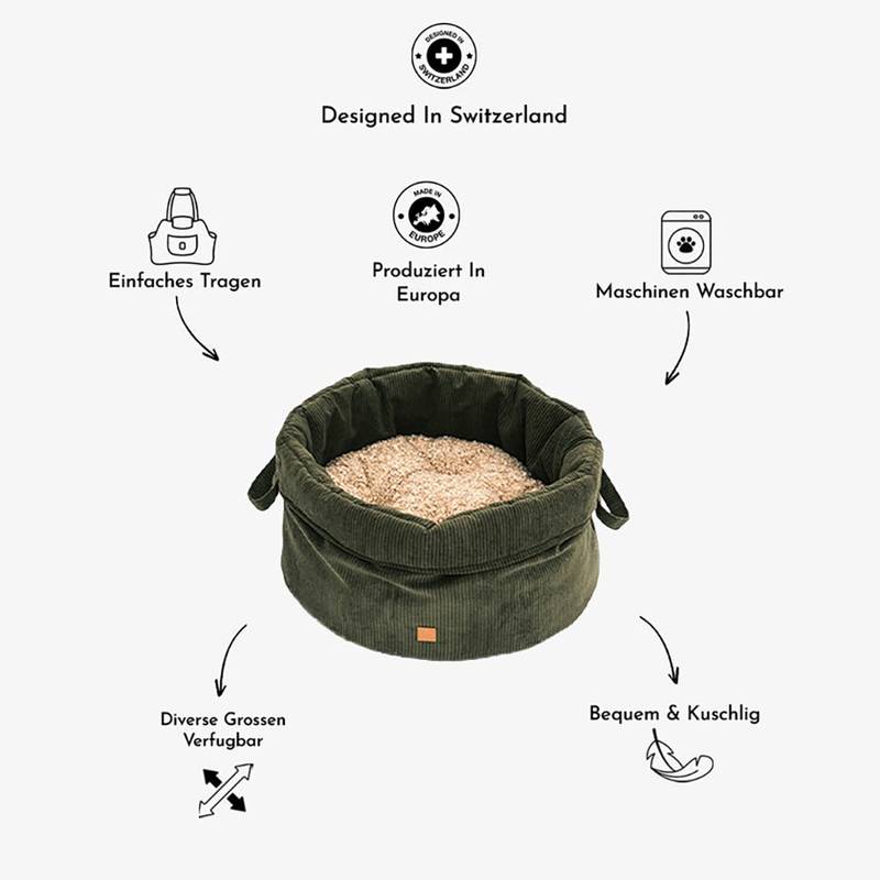 Hundekörbchen mit umklappbarem Rand, Baumwolle • Louis Cord in olivgrün von PET & Co.