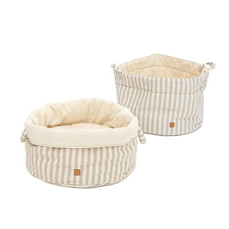 Hundekörbchen mit umklappbarem Rand, Baumwolle • Louis Stripes in crème und blau von PET & Co.