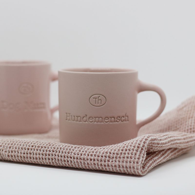 Die Hundemensch Tasse aus Keramik von Tausendhund in blush matte.