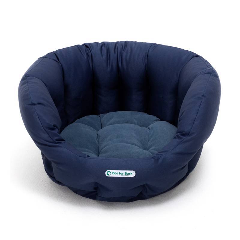 Ein behaglicher Schlafplatz für kleine und mittlere Hunde in Dunkelblau von Doctor Bark® – waschbar bei 95°C und durch die zurückhaltende Farbe passend für jeden Raum.