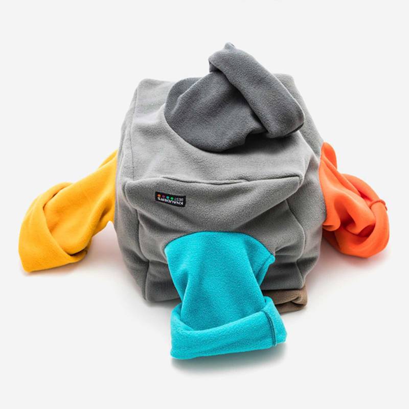 Ob Du das Leckerli einfach in eine der Öffnungen steckst oder kunstvoll in den umgefalteten Schlauch hineinfummelst, ob der Würfel leer bleibt oder Du die Suche mit zusammengeknülltem Zeitungspapier erschwerst, in dessen Falten sich die Belohnung geradezu heimtückisch verstecken kann – das alles hängt von Motivation und Können Deines Hundes ab.