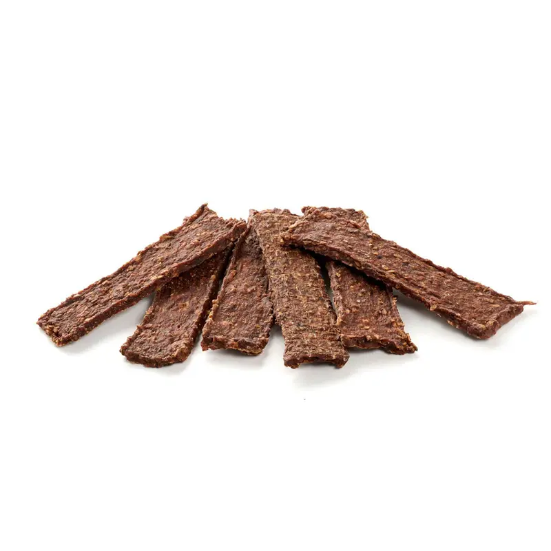 Für die Kaustreifen wird zerkleinertes Fleisch vom Känguru in Form gepresst, geschnitten und schonend getrocknet.