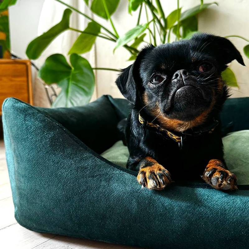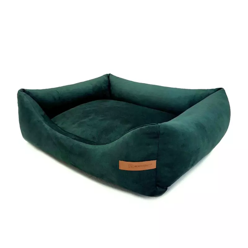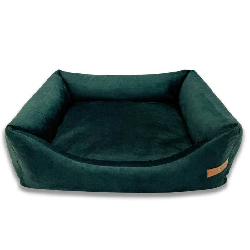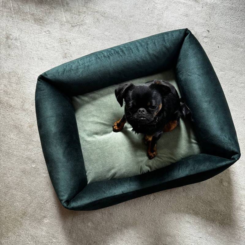 Kratzfestes Hundebett aus rPET • Samt dunkelgrün