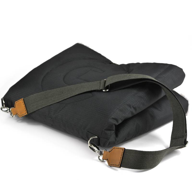 Der Taschengurt ist aus hochwertigem Doubleface-Gurtband und zur Lasche passendem, greigefarbenem Rindsleder gefertigt. Der Gurt ist individuell in der Länge verstellbar, wird mittels Karabinern an der Reisedecke befestigt und kann ebenfalls ganz einfach abgenommen werden. Einen besonderen Akzent setzt die Sattlernaht in Hellgrau.