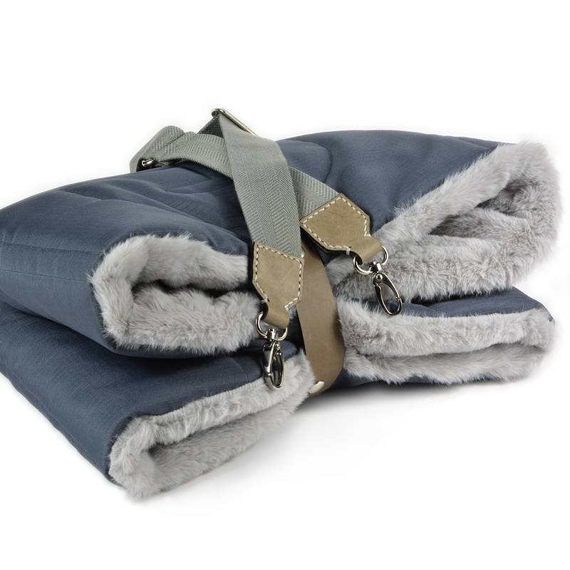Kuschelige Reisedecke für den Hund mit Gurt FANNY • grau