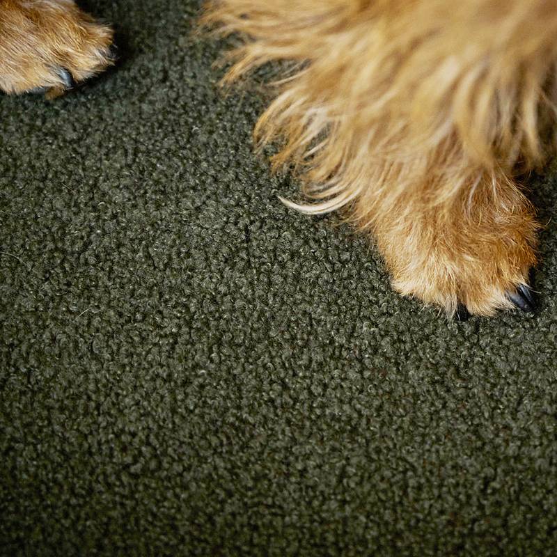 Über 100.000 Scheuertouren – dieser olivgrüne Bouclé-Bezug wäre theoretisch fit für den Einsatz in öffentlichen Verkehrsmitteln. Für Dein kuscheliges Hundebett TEDDY bedeutet das: der Bezug ist abrieb- und kratzfest und extrem lichtecht. Die wunderschönen Farben bleiben also lange so brillant wie am ersten Tag. Die hochwertigen Bezüge sind selbstverständlich abnehmbar, schmutz- und wasserabweisend imprägniert, und maschinenwaschbar bei 30°C. Das Inlett ist waschbar bei 60°C und auch nach vielen Wäschen noch fluffig weich wie ein Daunenkissen. - Das Design – wohldurchdacht, funktionell und traumhaft schön.