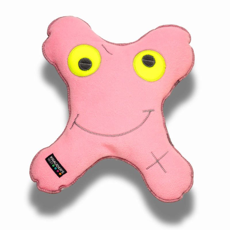 Das zart rosa Monster für Hunde mit dem schiefen Grinsen und dem treudoofen Blick hat übrigens noch neun Geschwister in unterschiedlichen Farben.