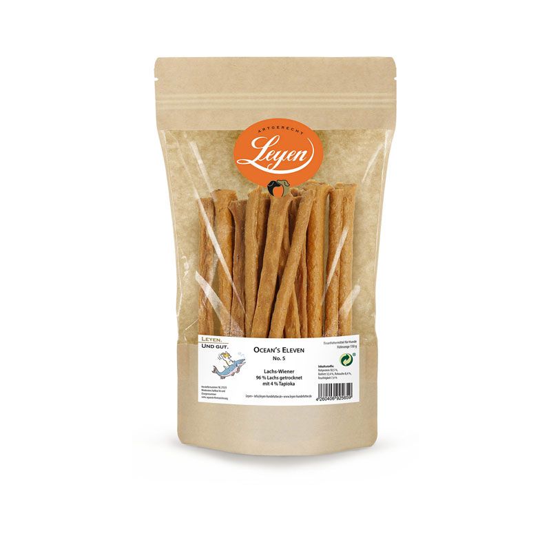 Unsere Lachs-Wiener sind eine köstliche und sehr gesunde Alternative zu üblichen Kausnacks, denn ihr gesundheitlicher Wert geht über die Unterstützung der Kaumuskulatur und der Durchblutung des Zahnfleisches deutlich hinaus: