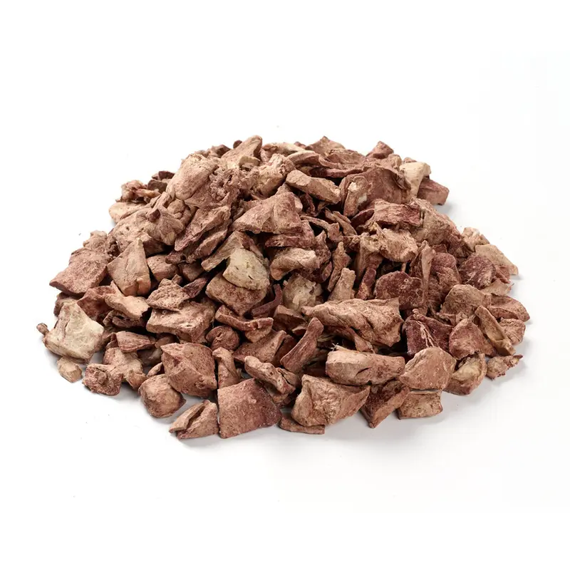 Das gefriergetrocknete Fleisch kann als Belohnung oder Snack gegeben werden. Anders als beim Kochen bleiben Nährstoffe wie Proteine, Fett, Vitamine und Mineralstoffe weitestgehend erhalten.