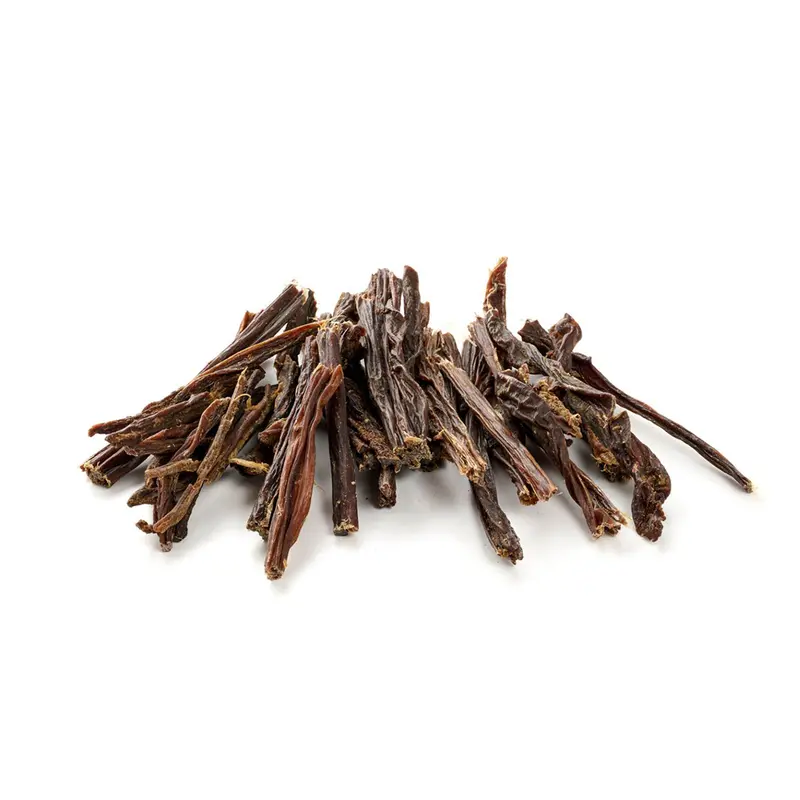Dieser feine Lamm-Snack wurde schonend getrocknet und ist eher mittelfest – also auch gut für Senioren geeignet.