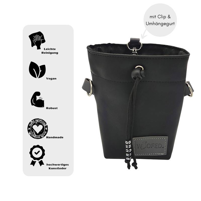 Leckerlibeutel Kunstleder schwarz mit Umhängegurt • BLACK STEEL