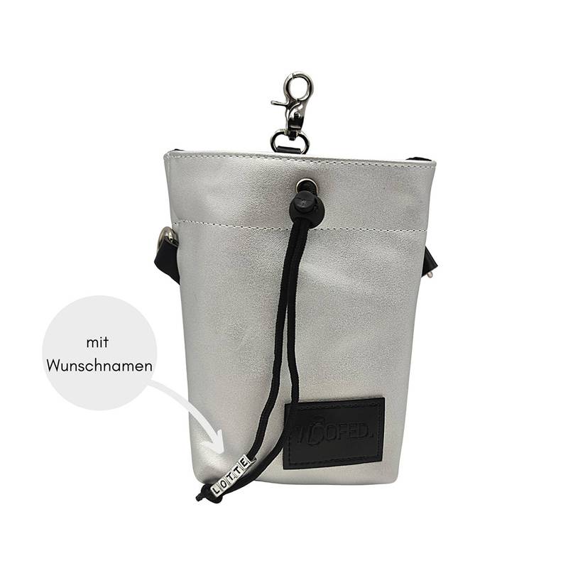 Leckerlibeutel Kunstleder silber mit Umhängegurt • SILVER
