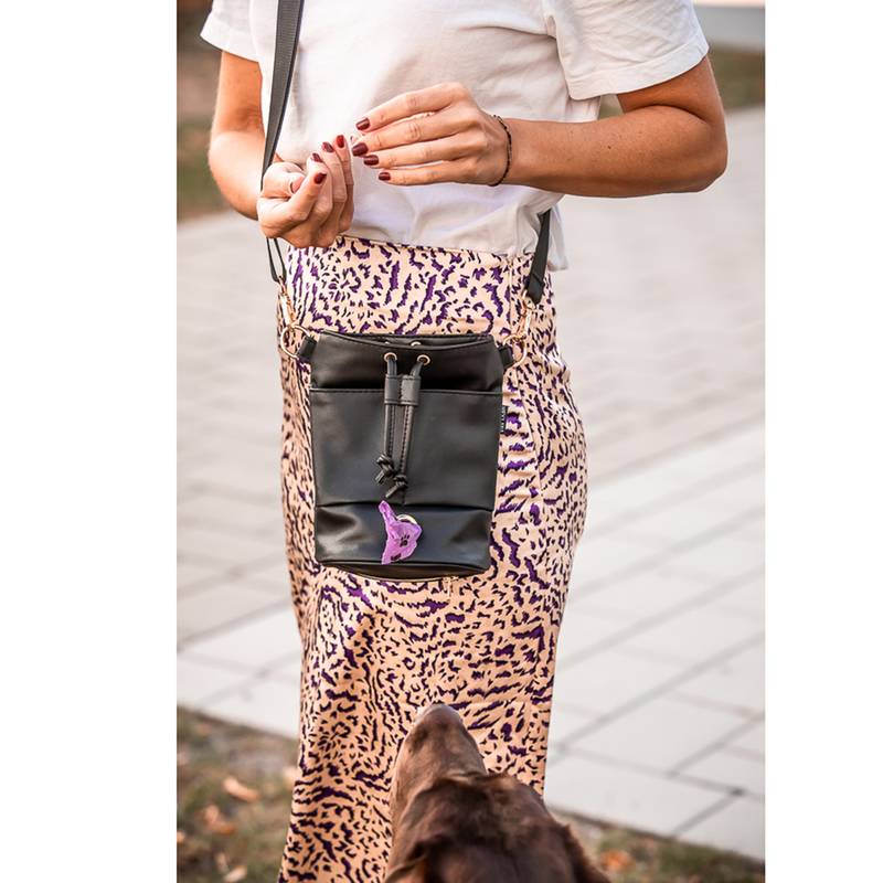 Großer Leckerlibeutel mit integriertem Kotbeutelspender, schwarz