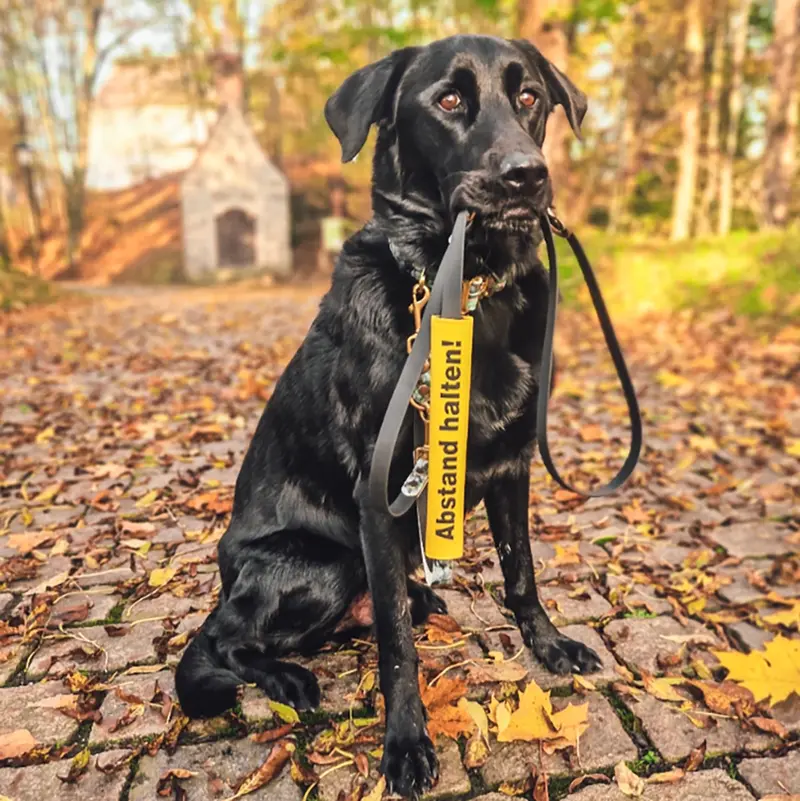 Ein abnehmbares Schild für die Hundeleine – Abstand halten