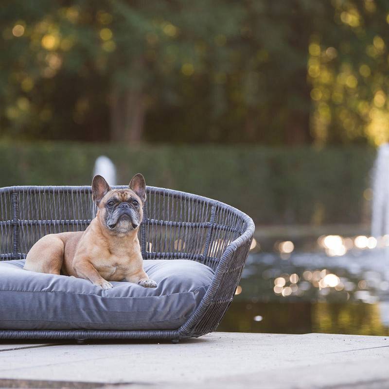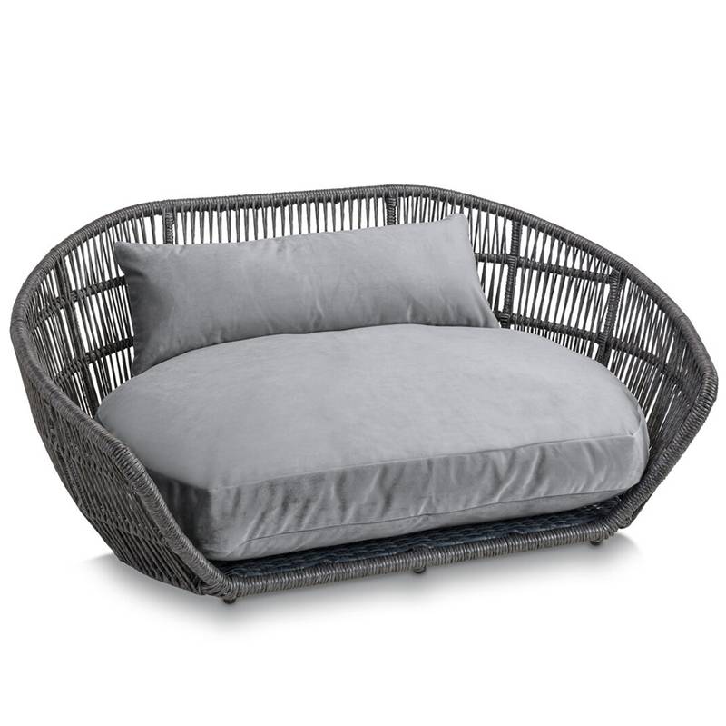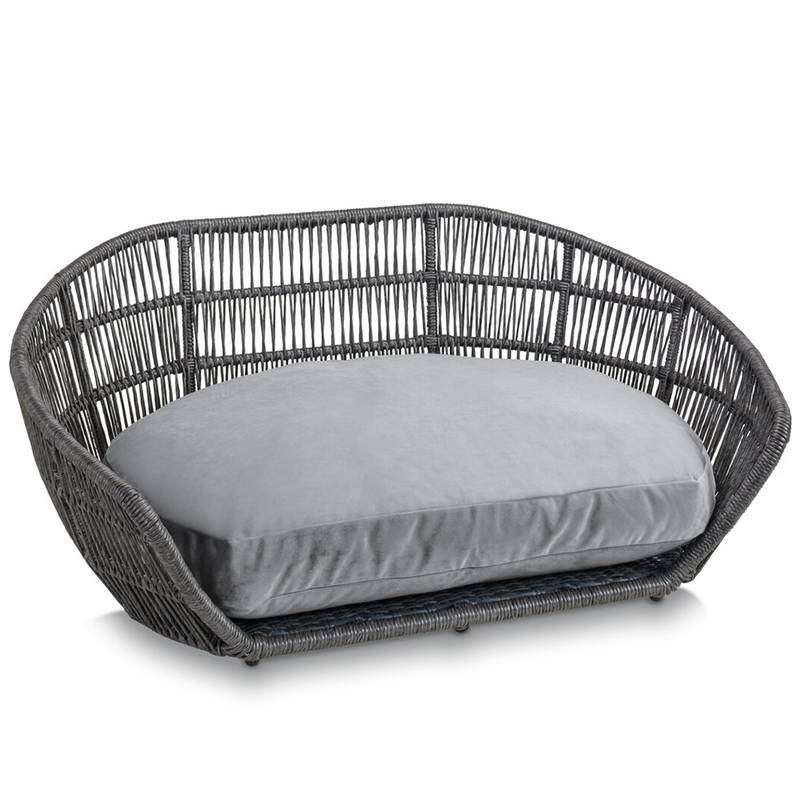 Luxus Hundebett PRADO OXFORD mit geflochtenem Rahmen von Laboni • grau