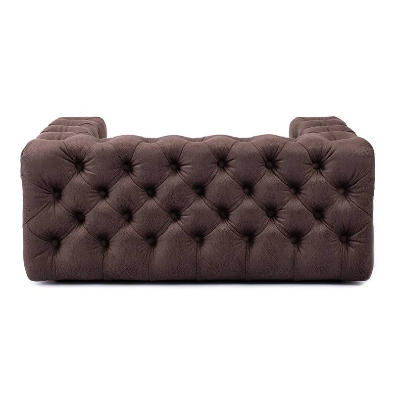 Dieses Stück Handwerkskunst in warmem Schokobraun kommt dem original Chesterfield optisch am nächsten. Es macht sich auch gut in stimmungsvollen, dunkel abgetönten Räumen. Ob an der Wand oder mittendrin im Geschehen: der hohe Rand wird Deinem Hund immer Sicherheit vermitteln – und dabei dank rundum sorgfältigster Verarbeitung immer eine gute Figur machen.