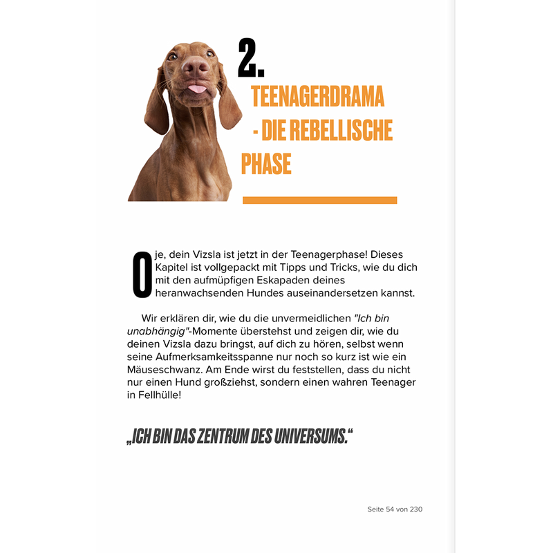 Nichts für schwache Nerven! Von Größenwahn bis Entdeckungsdrang, Jagtrieb und "Weil ich's kann"-Eskapaden – spätestens jetzt wirst Du diesen Ratgeber wieder öfter zur Hand nehmen... - Der erwachsene Vizsla