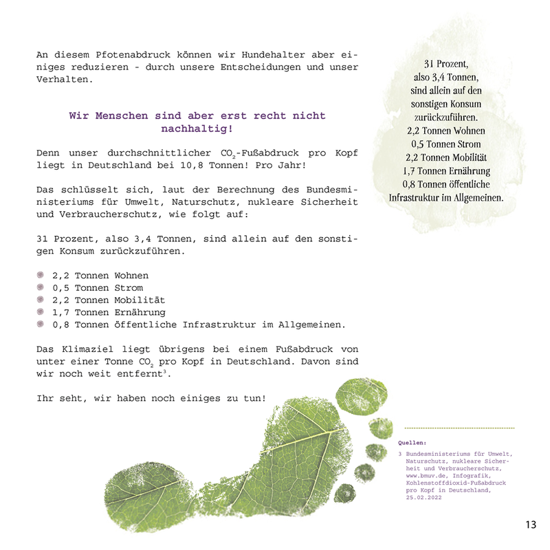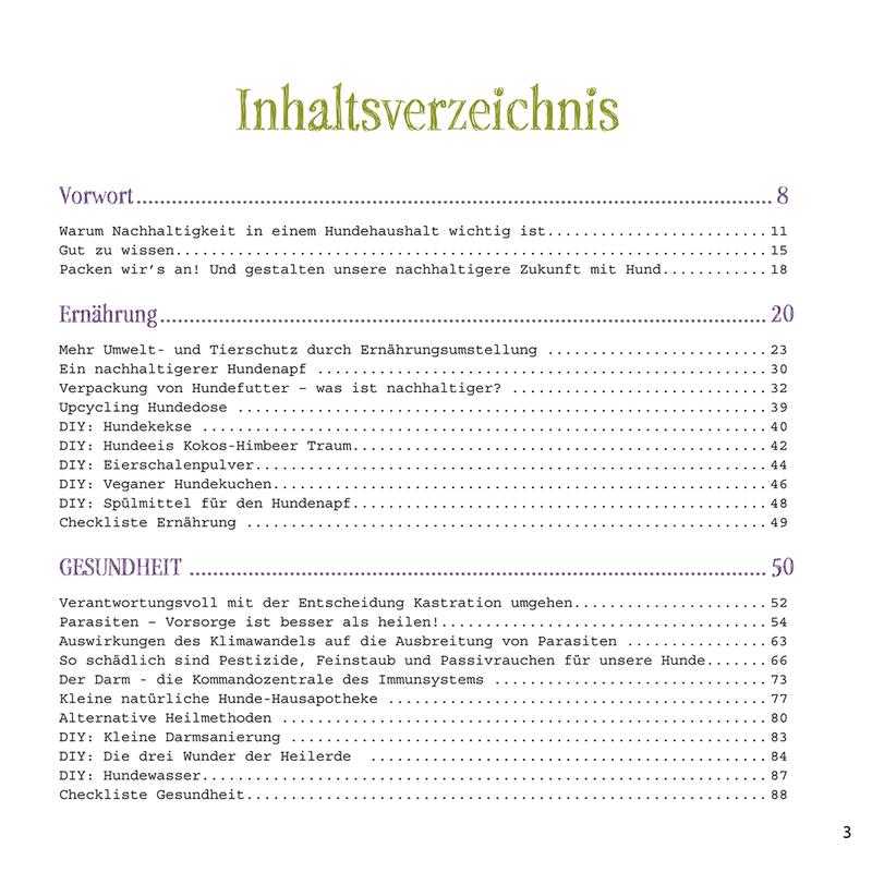 Wie du Dein Bewusstsein für Nachhaltigkeit auch in Sachen Hundehaltung in die Tat umsetzen kannst, ohne dass dich ein riesiger Aufgabenberg überfordert oder dir jemand mit dem moralischen Zeigefinger vor der Nase herumfuchtelt, das erfährst du in diesem schön gestalteten Buch.