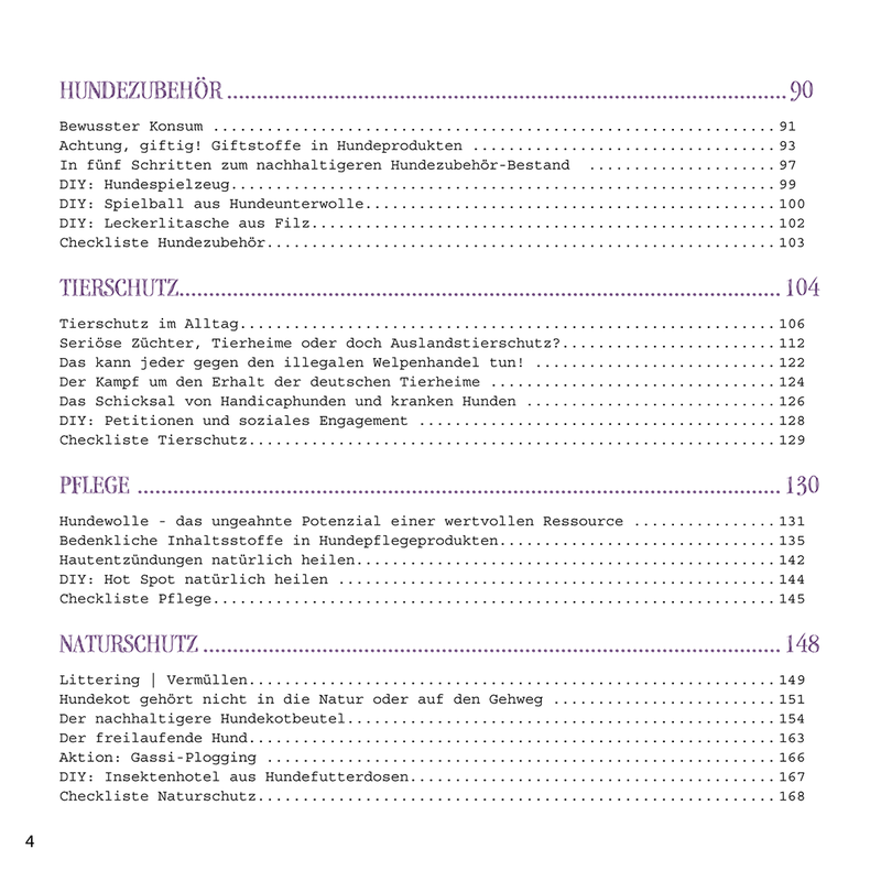 Von ungiftigem und plastikfreiem Hundezubehör über nachhaltige oder selbst gemachte Pflegeprodukte über Ernährungs- und Tierschutzfragen bis hin zu Unterwegs-Tipps bekommst du hier zahlreiche Tipps, Anleitungen und Inspirationen.