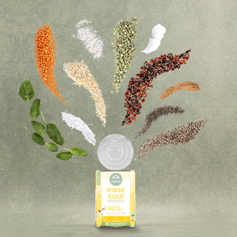Unsere beiden neuen Bio Veggie-Menüs aus rein veganen Zutaten zum Testen. Enthalten sind je Bio Hirse Gold und Bio Kürbis Liebe. Zusammensetzungen und Purinwerte findest Du auf den jeweiligen Produktseiten. Unsere veganen Nassfutter Sorten versorgen Deinen Hund mit wichtigen Nährstoffen und Mineralien auf pflanzlicher Basis ganz ohne Fleisch. Und wer naftie kennt, weiß dass die spezielle Brise Karma mitgeliefert wird!