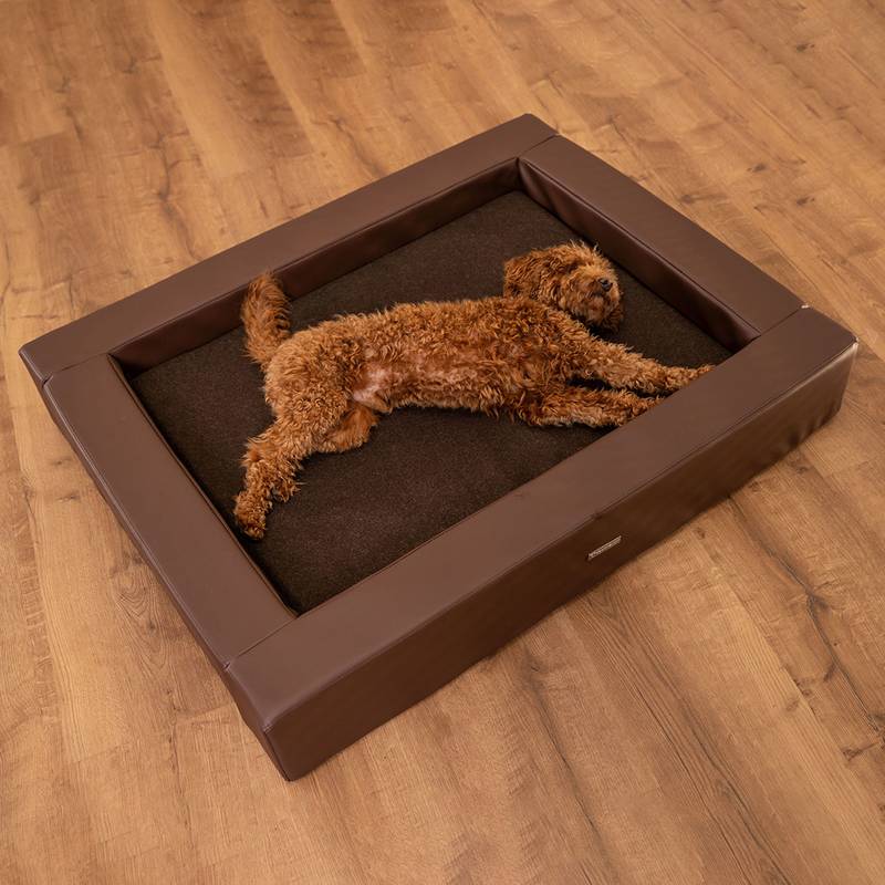 Orthopädisches Hundebett • Loden mit Kunstleder • braun