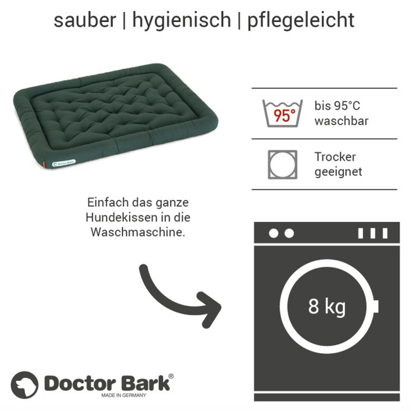 Nach jeder Wäsche ist Ihr Hundekissen von Doctor Bark sauber und rein.
