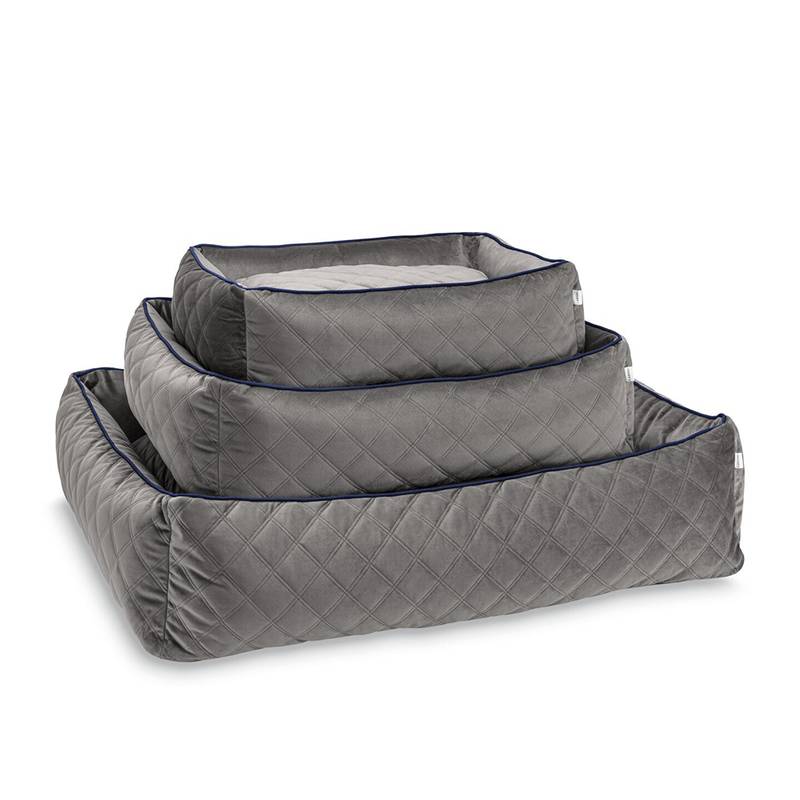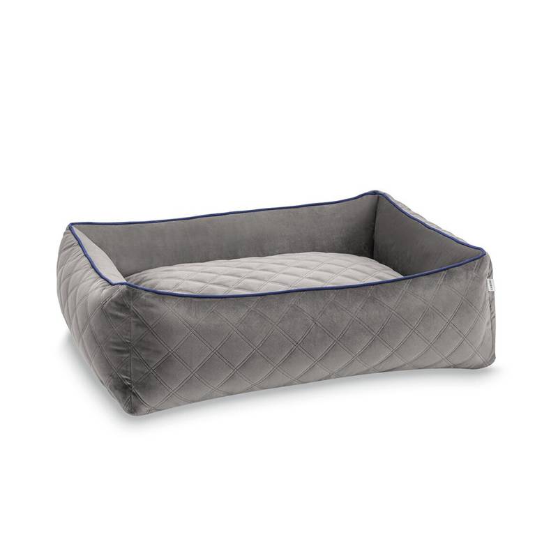 Orthopädisches Hundebett Samt grau – mit umlaufendem Rand. Modell OXFORD von Laboni.