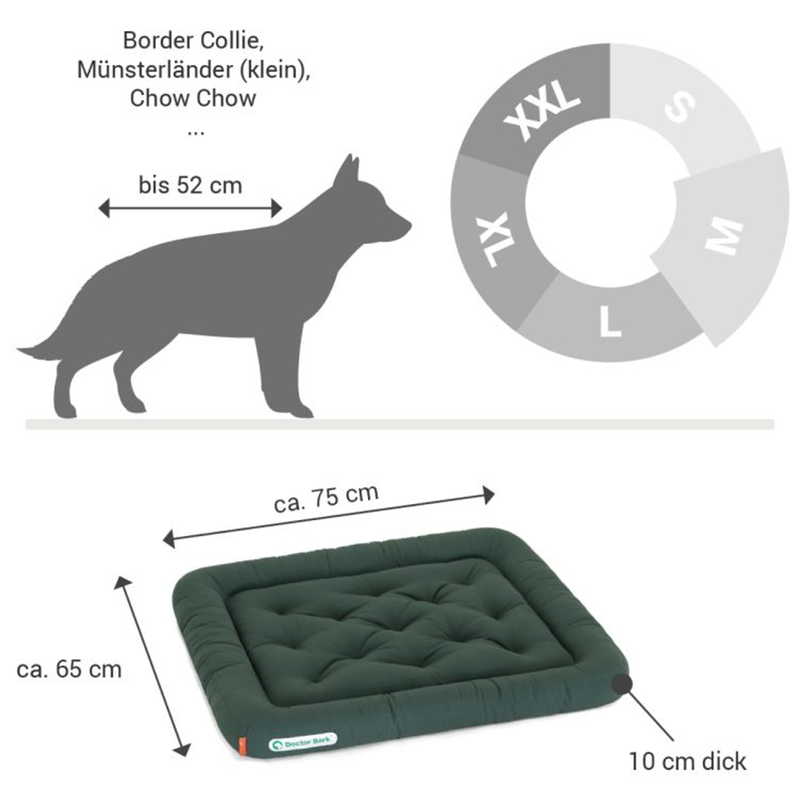 • XXL – Maße: ca. 115 x 100 x 10 cm für sehr große Hunde wie Bernhardiner, Deutsche Dogge, Barsoi.