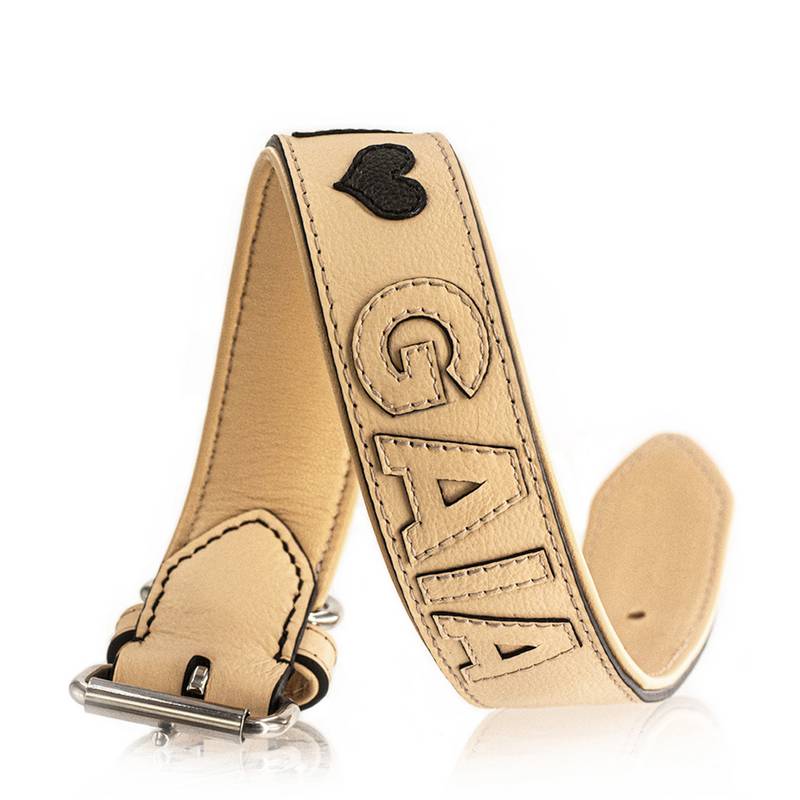 Personalisiertes Halsband aus Leder biscuit, Schriftfarbe frei wählbar