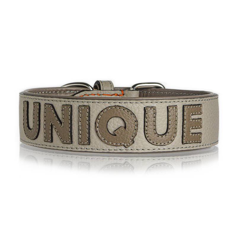 Personalisiertes Halsband aus Leder grau, Schriftfarbe frei wählbar