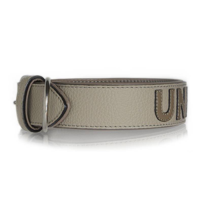 Ein ganz persönlich personalisiertes Lederhalsband in edlem Stone von gaiaswelt.