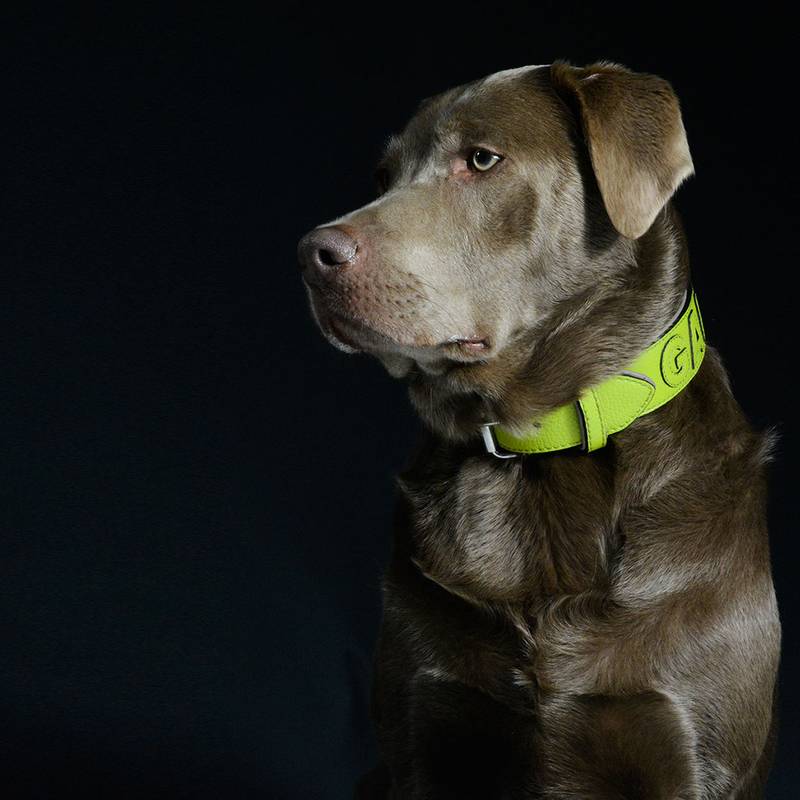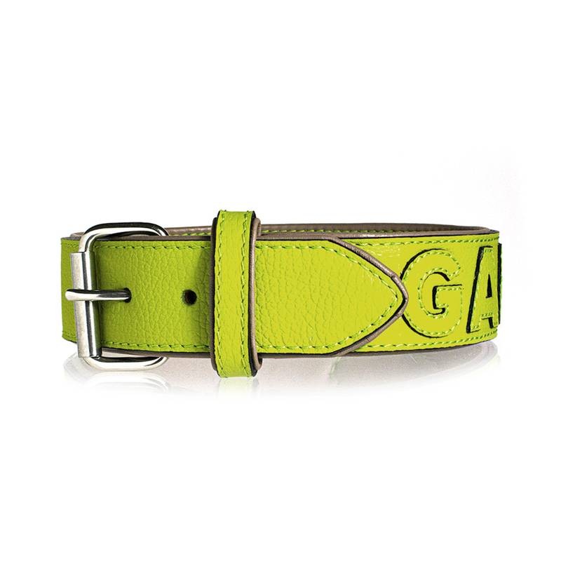 Ein ganz persönlich personalisiertes Lederhalsband in frühlingsfrischem Apfelgrün von gaiaswelt.