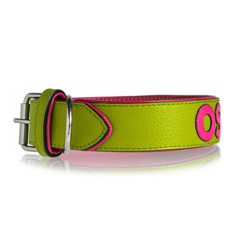 Personalisiertes Halsband aus Leder in Apfelgrün, Schriftfarbe frei wählbar