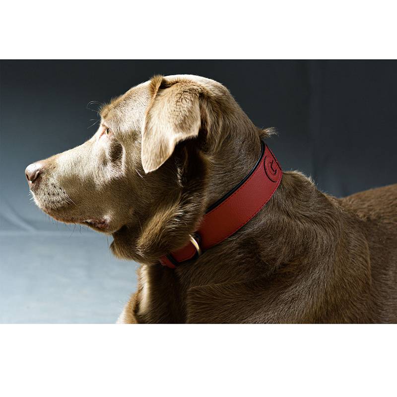 Ein ganz persönlich personalisiertes Lederhalsband in sattem Rot – genauer: Ochsenblutrot – von gaiaswelt.