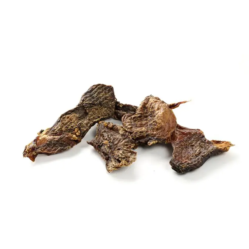 Für diesen feinen Snack wird naturbelassenes Pferdefleisch schonend getrocknet. Die unterschiedlich großen Stücke lassen sich gut dosieren – je nachdem, ob es eine kleiner Snack oder eine besondere Belohnung sein darf.