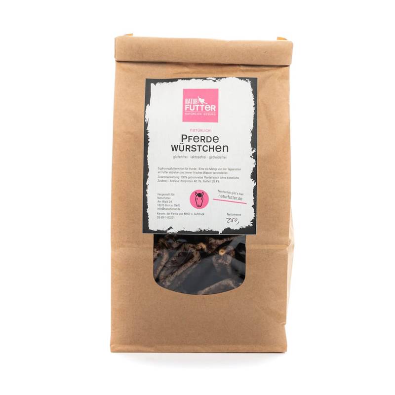 Feine Würstchen aus 100% Trockenfleisch vom Pferd. Sonst nichts.