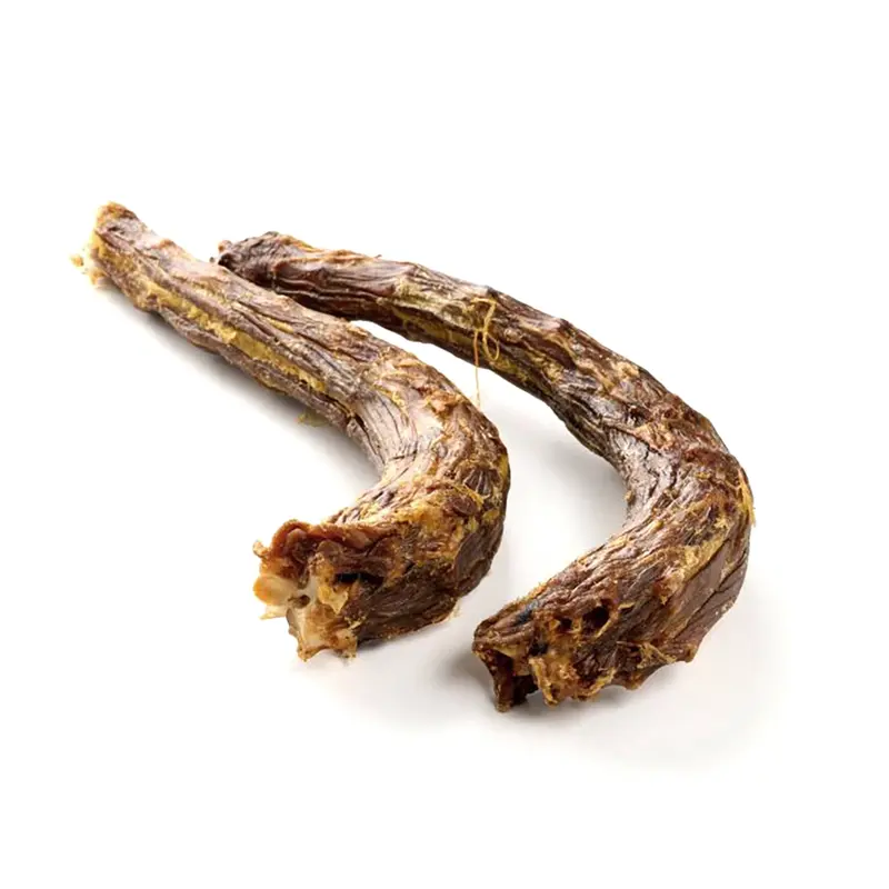 Die getrockneten Hälse der Pute sind ein großartiger Snack für ausdauernde Hunde. Schön knorpelig – da gibt es viel zu nagen und zu kauen.