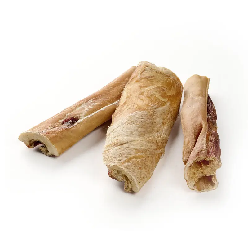 Viel Protein, wenig Fett, ausgiebiges Kauvergnügen für Fortgeschrittene – daran hat Dein Hund eine Weile zu nagen (mit dem positiven Nebeneffekt, dass die Kaumuskulatur trainiert und das Gebiss von weichen Zahnbelägen befreit und so Zahnstein vorgebeugt wird).
