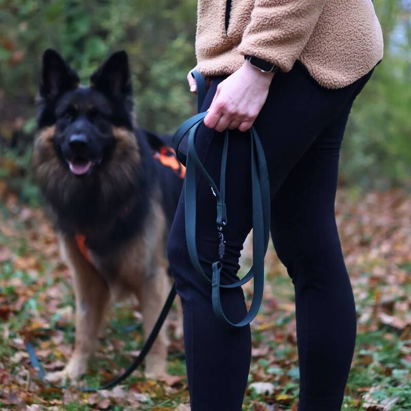 So kannst Du jederzeit Deinen Hund (und passierende Jogger, Radfahrer oder gar Reiter) sichern und ihm danach wieder Freiraum geben. Bei Hundebegegnungen entscheidest Du je nach Situation, ob Dein Hund sich frei bewegen kann oder bei Dir bleibt.
